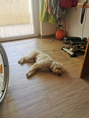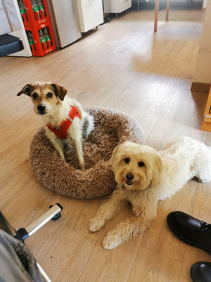 Cassy ist ein Parsen Russell Terrier. Sie ist sehr ängstlich. Lenny ist ein Havaneser Pudel Mix. 2 Jahre alt. Wenn er sein Regenmantel an hat steht er stocksteif da und bewegt sich keinen Millimeter. Karla ist ein Golden Retriever Wenn wir Möhren kochen, bekommt sie die Schale, die sie mit Genuss frisst.